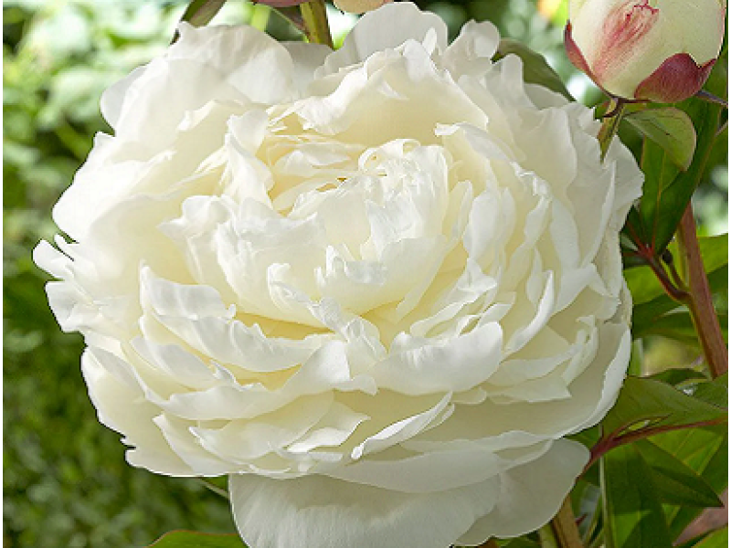 Пион Elsa Sass – элегантный и изысканный сорт травянистого пиона позднего срока цветения с нежными густомахровыми цветами. . Идеально расположенные лепестки образуют необыкновенно привлекательную форму розы. Имеет множество боковых бутонов. Цветки огромные (20 см), белые, с легким жемчужным оттенком, редко может быть розовинка. Обладает приятным сладковатым ароматом. Взрослый куст имеет высоту 80-90 см. Невероятно прекрасный пион для среза.