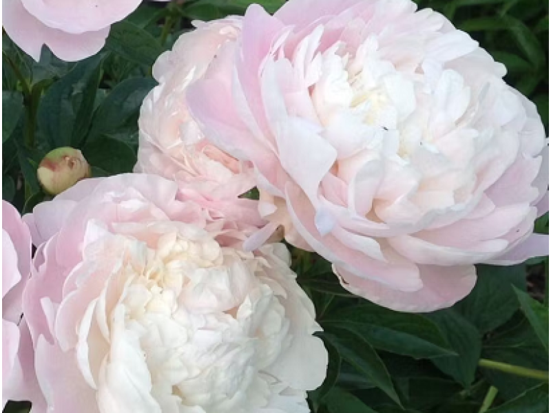 Пион Odile – супер-нежная, изящная француженка. Густомахровый, бомбовидный цветок, расцветает нежно-розовым, в процессе цветения становится белым с розовой подсветкой внутри, диаметр 17 см. Иногда может иметь красноватые мазки. Долго стоит в бутоне. Имеет боковые бутоны, что увеличивает срок цветения. Сорт раннего срока цветения, высота взрослого куста 80-100 см. Имеет гегкий атомат. Пион Odile – фаворит свадебных букетов, один из лидеров сортов для срезки.