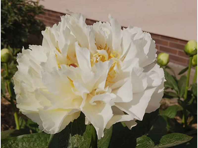 Пион Grand Massive – уникальный, коллекционный пион, имеет зрелищные полумахровые и полномахровые цветы, часто с очень зубчатыми краями. Это придает наконец чисто белым цветам неповторимый вид. Уникальность еще больше подчеркивается зеленоватым сиянием, просматривающимся над кремовым начальным цветом лепестков. Зеленый и кремовый оттенки тускнеют по мере развития цветов. Между лепестками отчетливо видны светло-желтые тычинки. «Grand Massive» - сверхранний сорт, время цветения приходится на очень раннее время сезона, одновременно с пионом «Blushing Princess» и на десять дней раньше эталонного пиона «Red Charm». Имеет боковые бутоны, что продлевает срок цветения. Пион Grand Massive не имеет аромата. Куст компактный, не разваливается, быстро нарастает. Невероятный сорт для срезки.